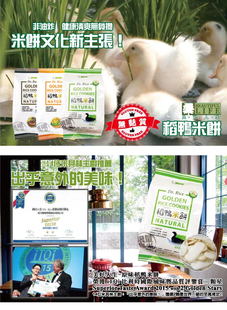 台灣海力捷公司出品的「美好人生稻鴨米餅」是家長們最好的選擇!