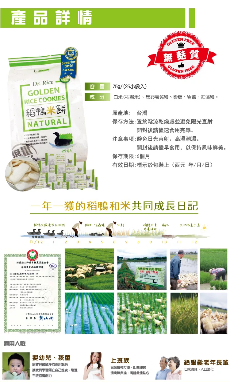 | 品名 | 『美好人生Dr. Rice』稻鴨米餅-原味(75公克/包) |