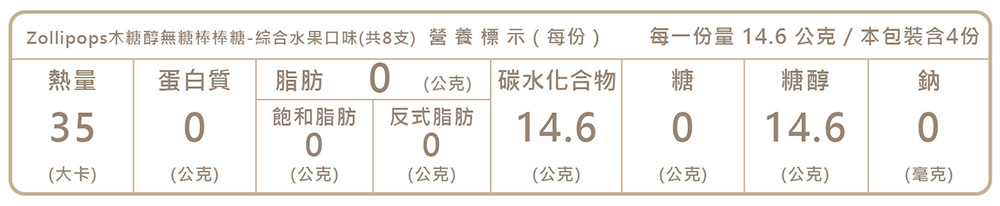 品名Zollipops木糖醇無糖棒棒糖 – 綜合水果口味8支入