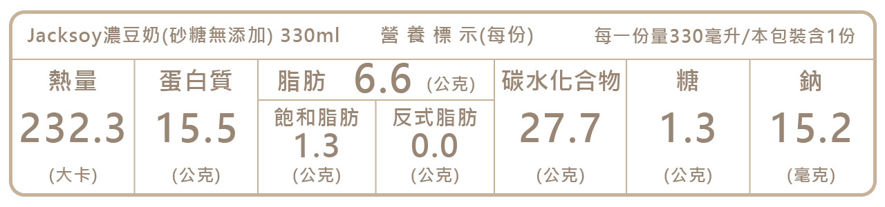 Jacksoy濃豆奶(砂糖無添加)330ml-全素
