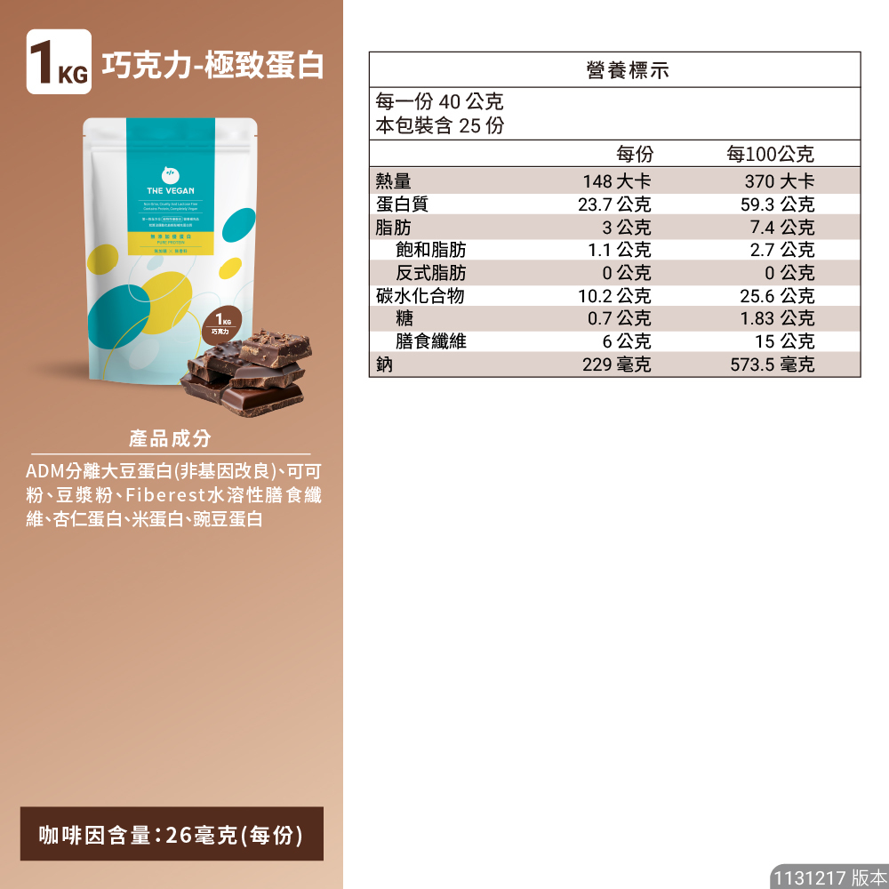 THE-VEGAN極致植物優蛋白(巧克力口味)1kg-全素,樂覓未來超市