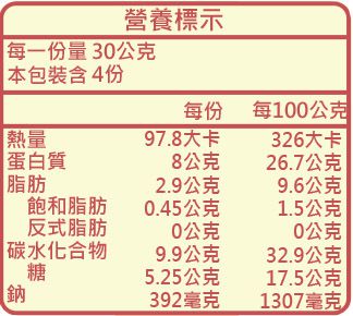 商品詳情 產品成分: 組織狀大豆蛋白(非基因改造大豆蛋白、小麥澱粉、小麥蛋白)、芥花油(非基因改造)、豌豆粉、砂糖、釀造醬油(含有水、非基因改造大豆、小麥、鹽)、甜味劑(D-山梨醇液70%)、食鹽、調味劑(L-麩酸鈉、5’-次黃嘌呤核苷磷酸二鈉、5’-鳥嘌呤核苷磷酸二鈉)、香辛料(辣椒、甘草、肉桂、青花椒)、防腐劑(己二烯酸鉀)、油性辣椒紅、抗氧化劑 (維生素E)。 過敏原資訊 ・過敏原資訊:本產品含有大豆和含麵筋蛋白穀物(小麥)。 ・本產品生產製程廠房,其設備或生產管線有處理芝麻。 無肉樂植物肉絲(青花椒風味)120g-全素 TWD $95 TWD$ 95
