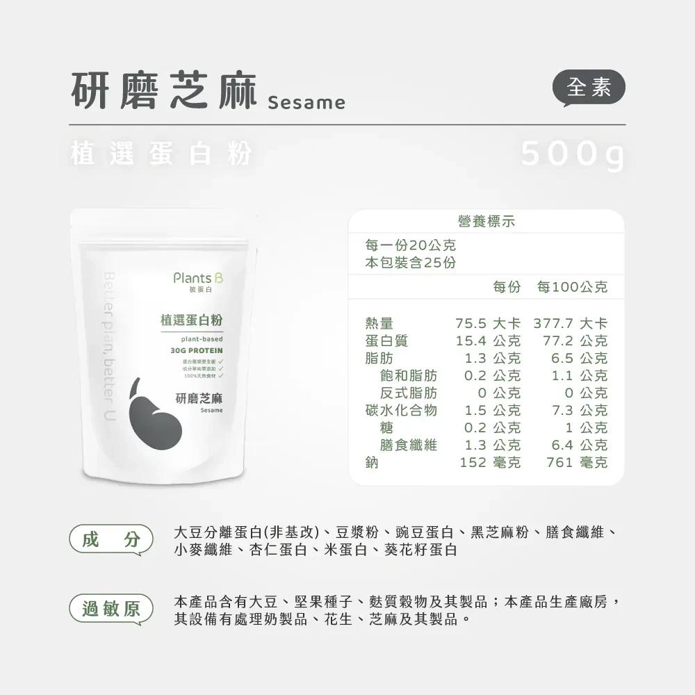 PlantsB彼蛋白植選蛋白粉500g-研磨芝麻,樂覓未來超市