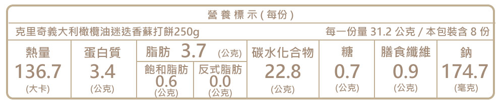 CRICH克里奇義大利橄欖油迷迭香蘇打餅250g-全素