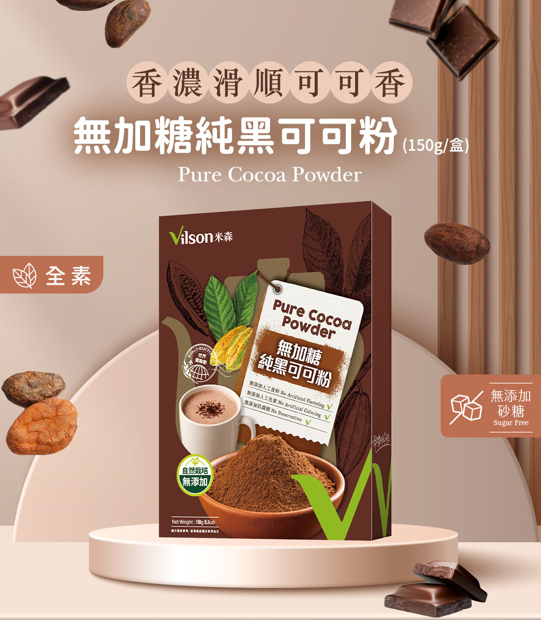 米森無加糖純黑可可粉150g-全素,樂覓未來超市