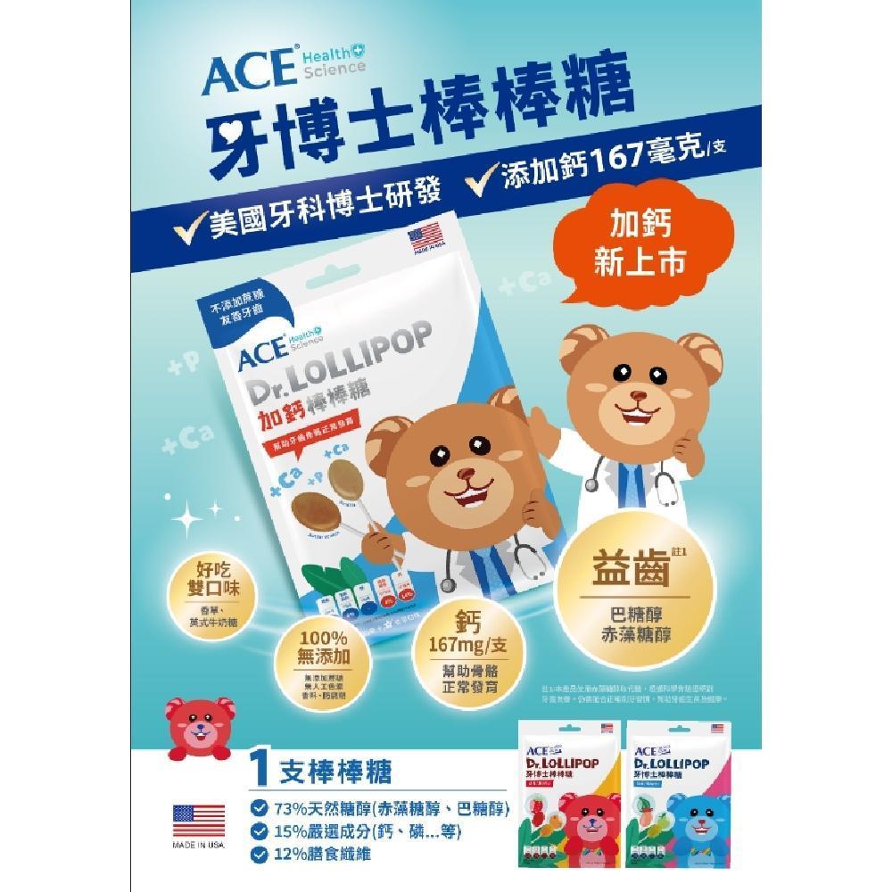 ACE SCIENCE牙博士加鈣棒棒糖(香草+英式牛奶糖)-全素